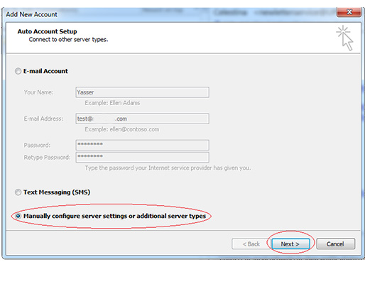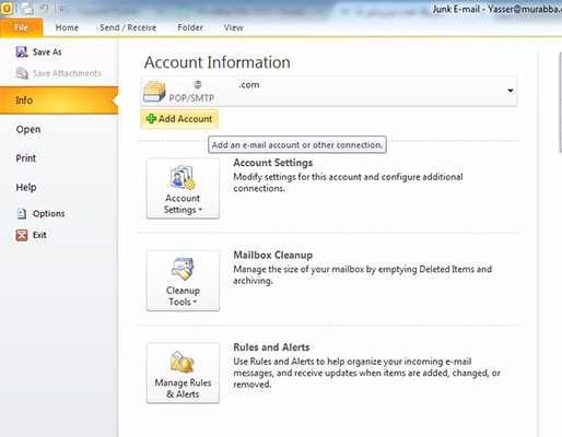 يرجى فتح برنامج الاوت لوك File > Add Account