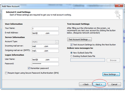 - أكتب بريدك وكلمة المرور ثم أضغط التالي ثم إنهاء، ستجد بريدك الآن أضيف إلى قائمة الأبردة أضغط عليه مرتان أو أختر خصائص.